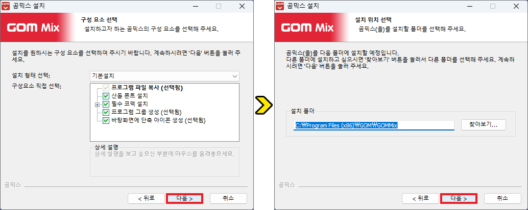 잠시 후 지정된 다운로드 항목의 위치로 들어가 보면 GOMMIXKORSETUP_NEW 파일이 생성되어 있을 테니 더블클릭해서 실행하고 허용합니다.