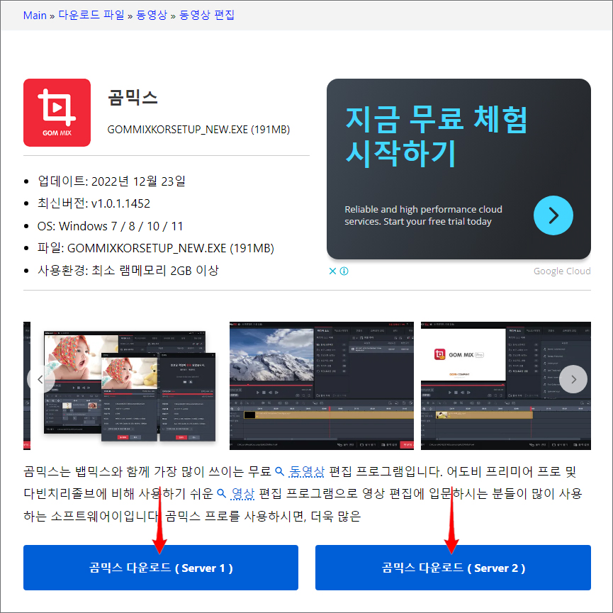 열린 사이트에서 동영상 편집 프로그램 곰믹스의 주요 기능 및 관련 내용을 볼 수 있는데 곰믹스 구버전 다운로드를 원하시는 분들은 위 이미지에 표시해 드린 버튼 2개 중 아무거나 클릭하면 설치 파일을 내려받을 수 있을 거예요.