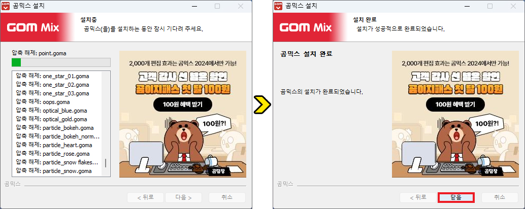 성공적으로 완료되면 [닫음]을 눌러 창을 닫으면 되니 설치 과정을 진행함에 있어 특별히 어려운 점은 없으실 거예요.