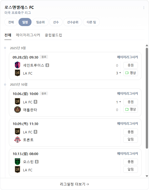 LAFC 경기일정