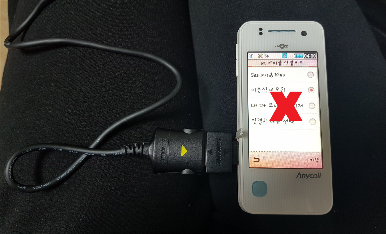 일단은 설정을 하기 위해 폰에서 환경설정> 연결 설정> PC 케이블 연결모드로 들어간 다음 이동식 메모리를 선택 후 [저장]을 눌러주세요.(다른 기종의 경우 멀티미디어로 들어가서 설정해야 될 수 있으니 확인해 볼 것)
